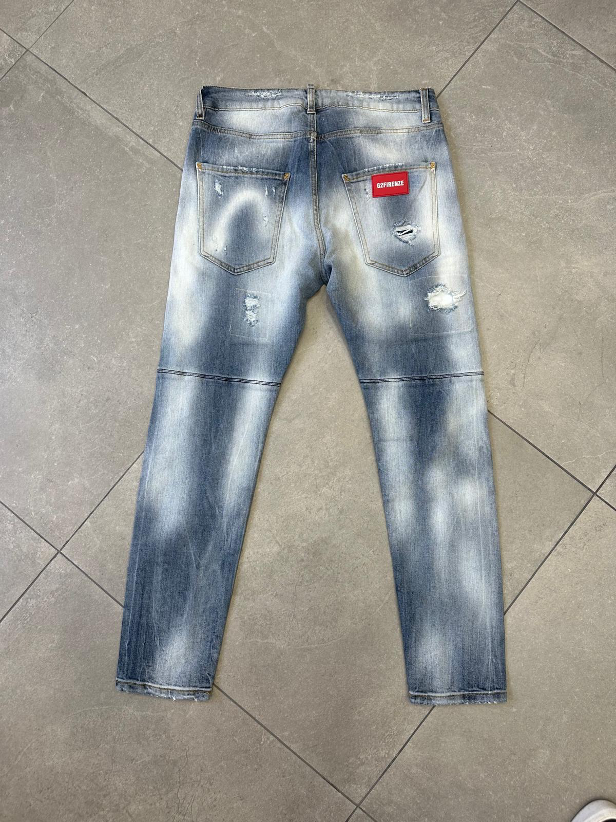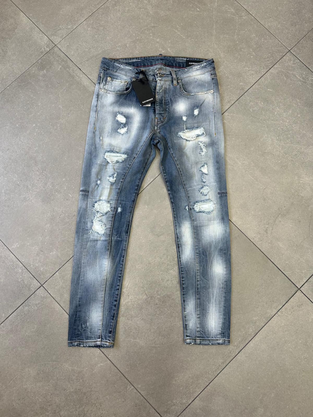 Denim vintage vibes con un twist moderno: strappi strategici e lavaggio chiaro per il massimo del cool."